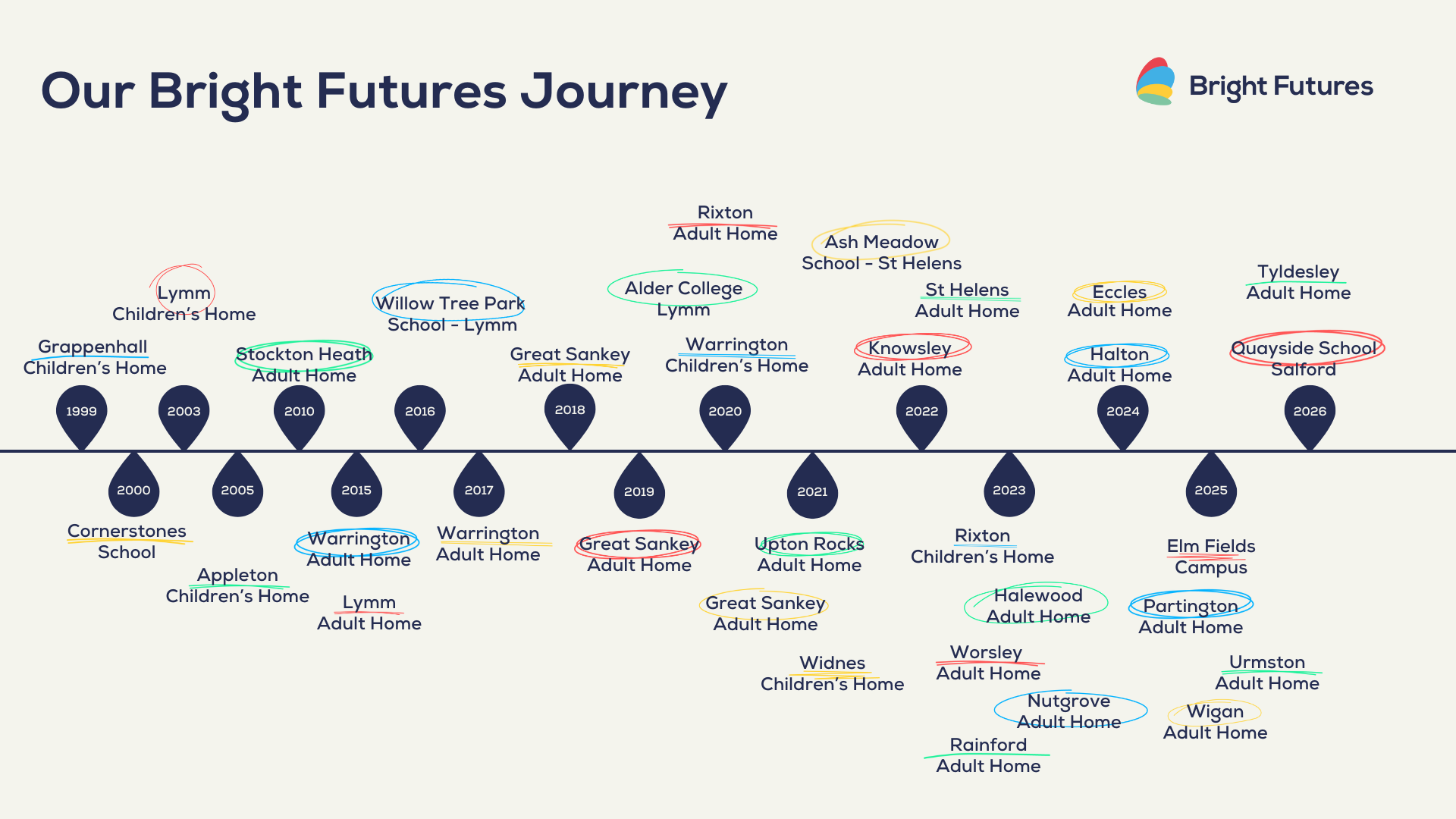 At Bright Futures, we’re a growing organisation, currently running two schools and one college as part of our Great Education offer, alongside our Great Care offer that provides residential care homes for both children and adults, across Lymm, Warrington, Liverpool, St Helens, and Greater Manchester, with more on the way.